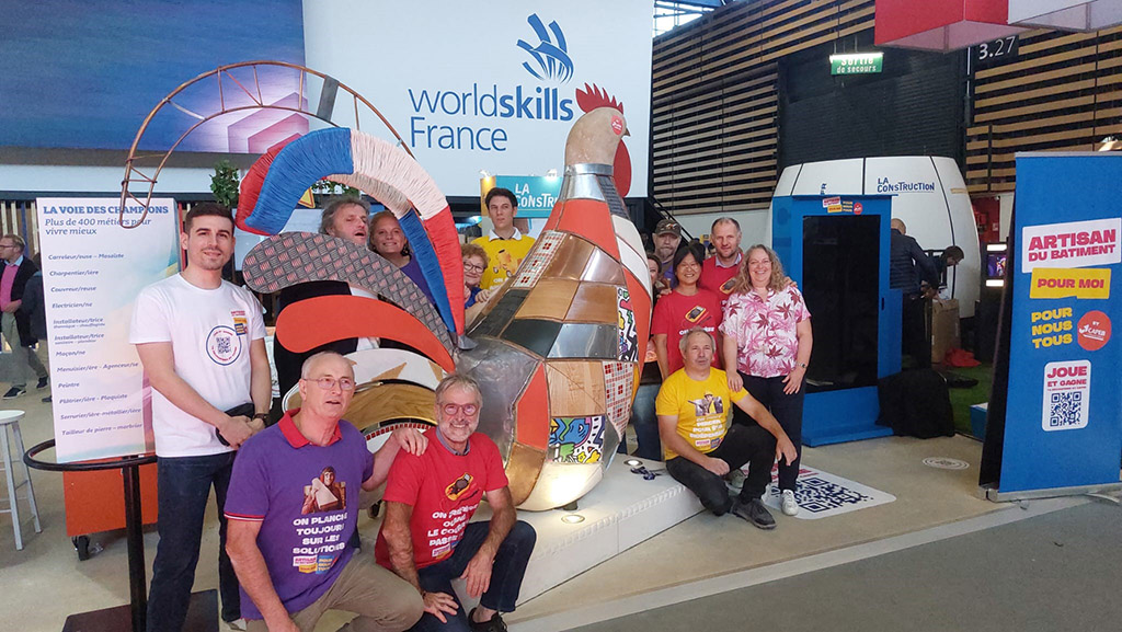Un grand merci à tous les personnes qui ont contribué au beau projet de l’emblème national du coq, représentant l’artisanat du bâtiment et ses valeurs et à tous ceux qui ont contribué pour que la France soit sur le podium international, avec 9 médailles d’or, dont 5 dans la construction et 5 médailles d’argent dont 1 dans la construction.