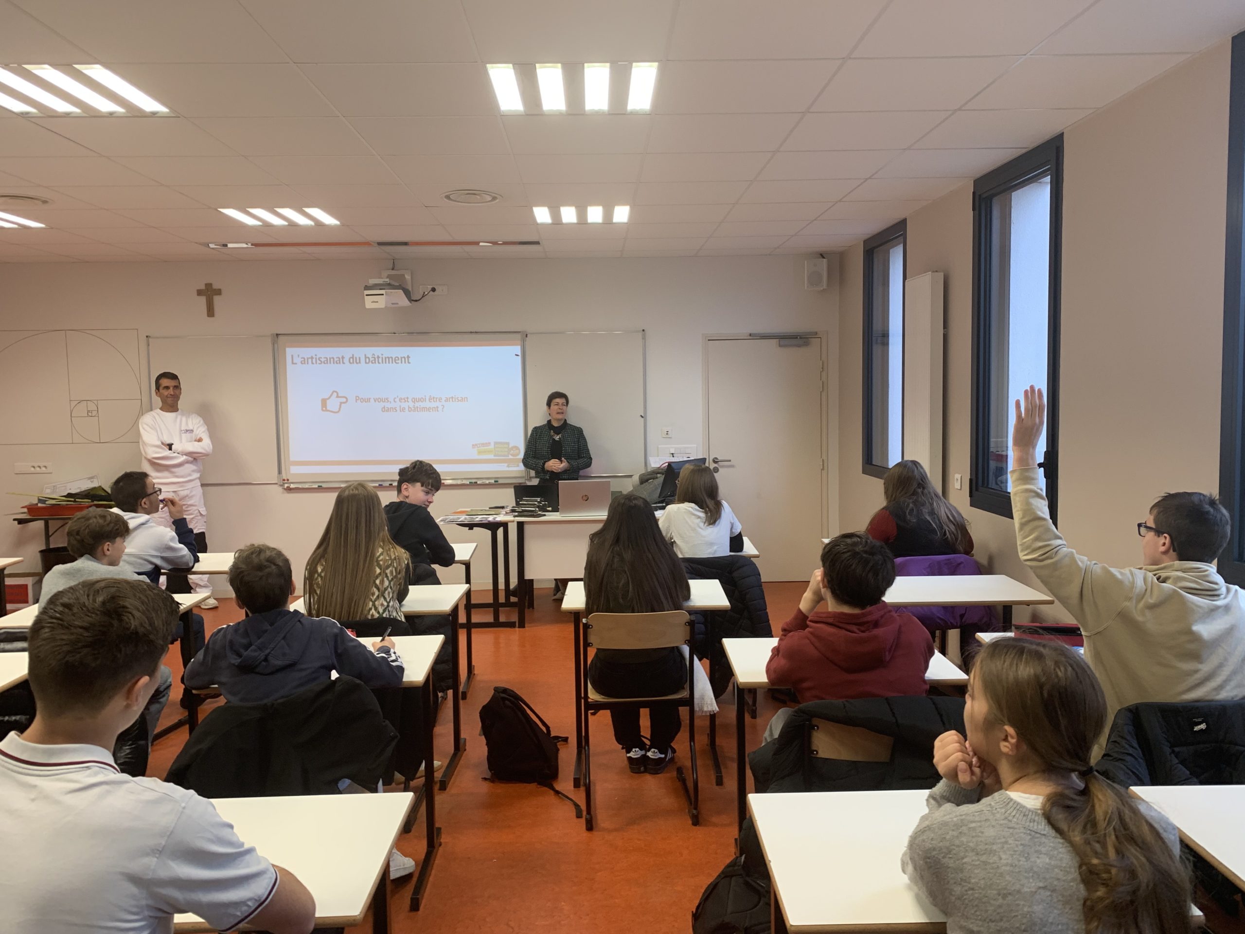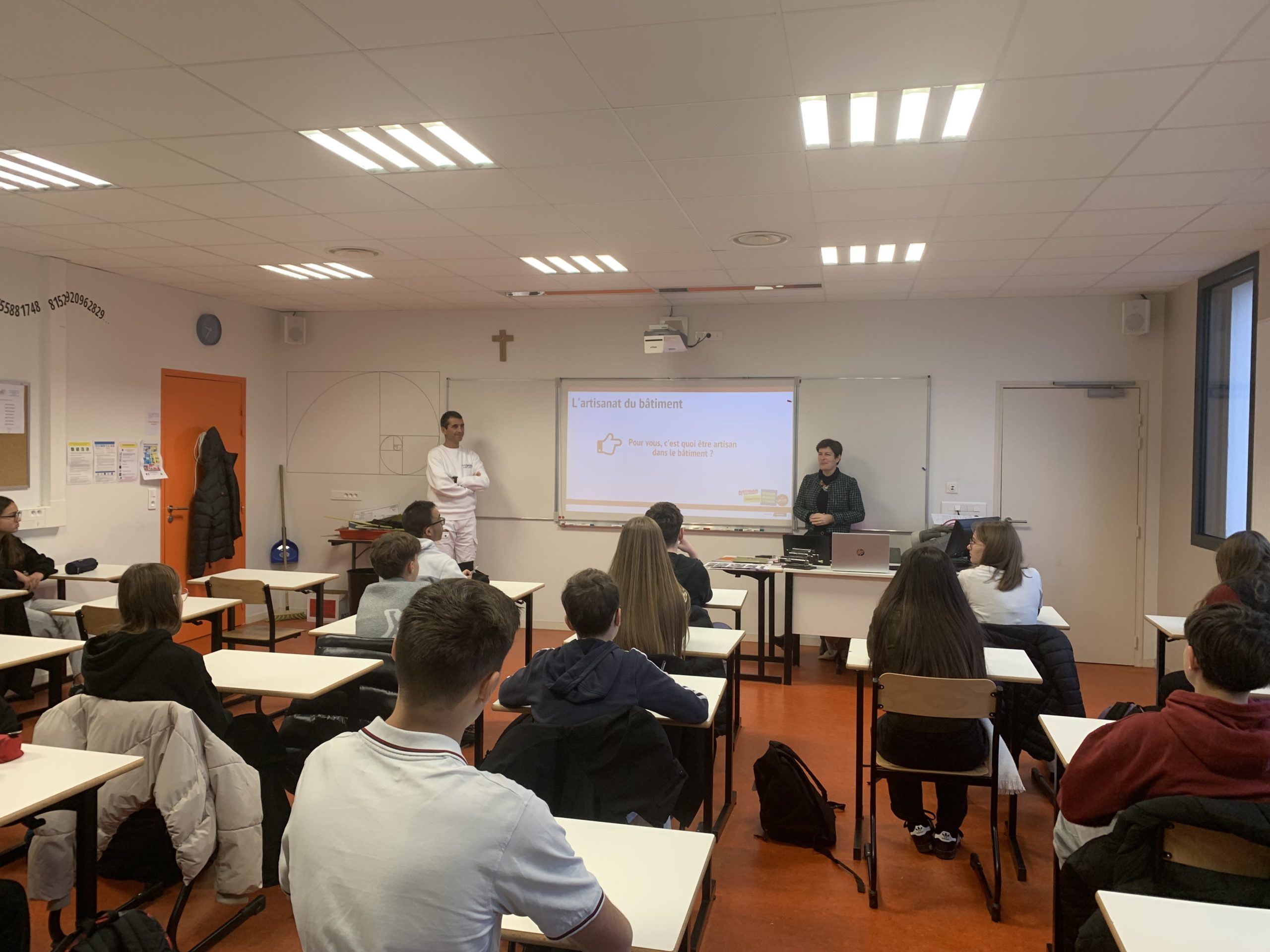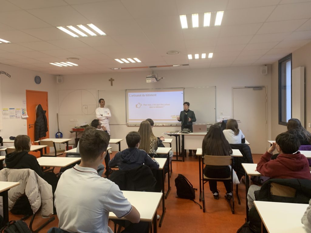 3 classes de niveau 3ème ont pu découvrir la présentation des différents métiers dans le bâtiment, le parcours de professionnels avec la venue de Jérôme Gazengel, chef d’entreprise en peinture. Un quiz a été réalisé à la fin de cette intervention pour challenger les équipes afin de remporter des gourmandises de Noël !