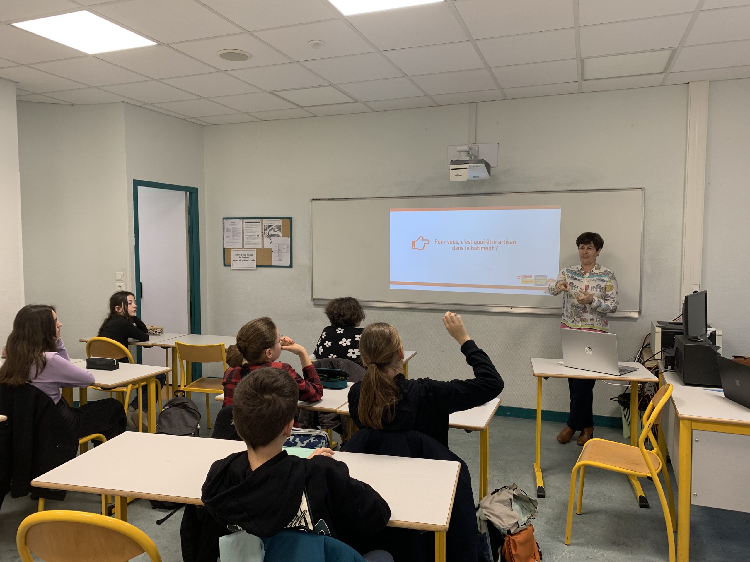 Durant la matinée, différents groupes ont pu découvrir les métiers du bâtiment, leurs spécificités et les formations pour intégrer ce secteur. Les collégiens ont également regardé différentes vidéos témoignages des artisans qui parlent de leur passion.