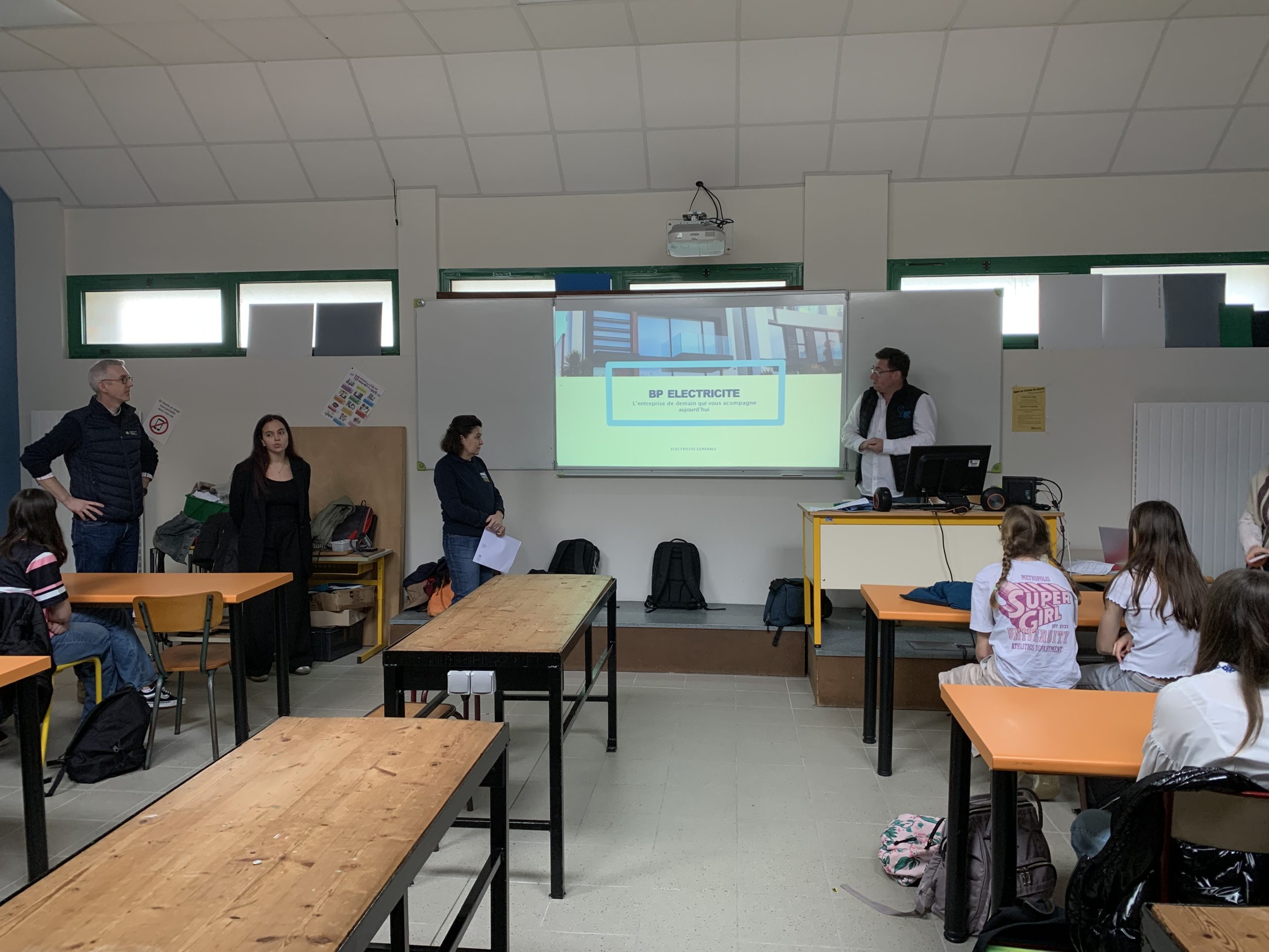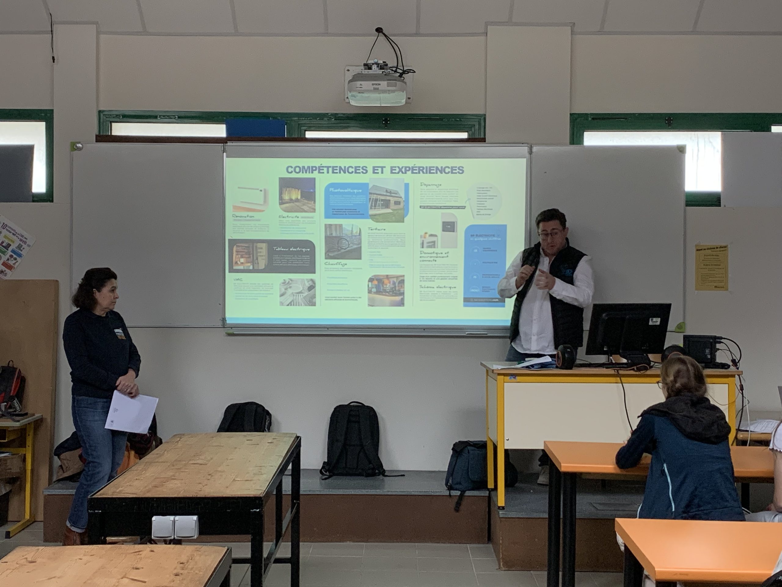 Les jeunes ont pu découvrir l’apprentissage avec l’équipe du CFA. Ils ont également découvert les métiers de l’électricité avec Bruno Prigent, Gérant de l’entreprise BP Electricité. Son intervention a porté sur son parcours, sur l’importance du travail en équipe et sur la diversité de ses missions (Rénovation, éclairages extérieurs, tableau électrique, vmc, photovoltaïque, tertiaire, chauffage, dépannage, domotique…).
