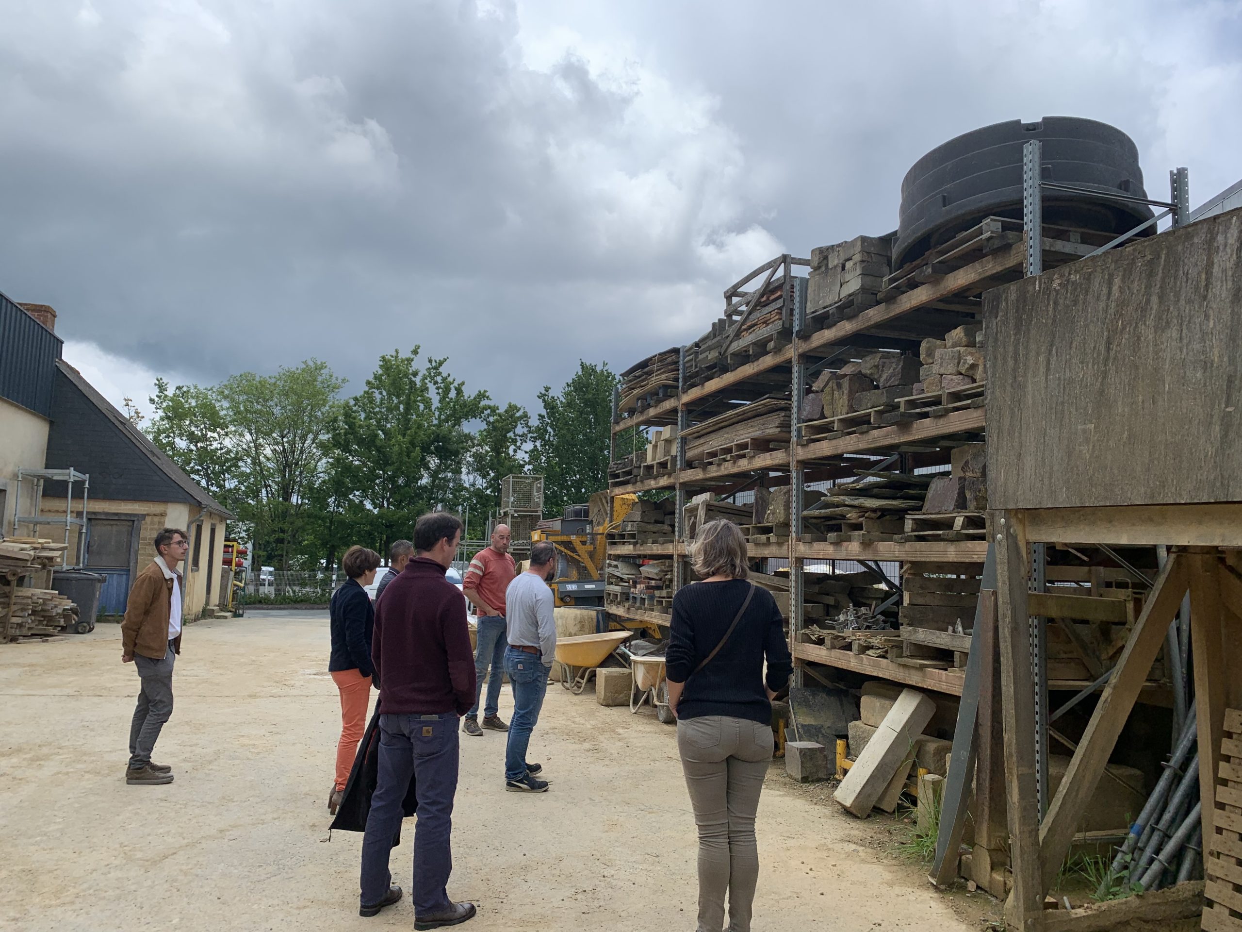 Visite de l’entreprise Sarl Denis Malléjac, entreprise spécialisée en maçonnerie terre crue et pierre, lors d’une visite cet après-midi, à Pacé, dans le cadre du Printemps de l’éco-construction et de la rénovation !